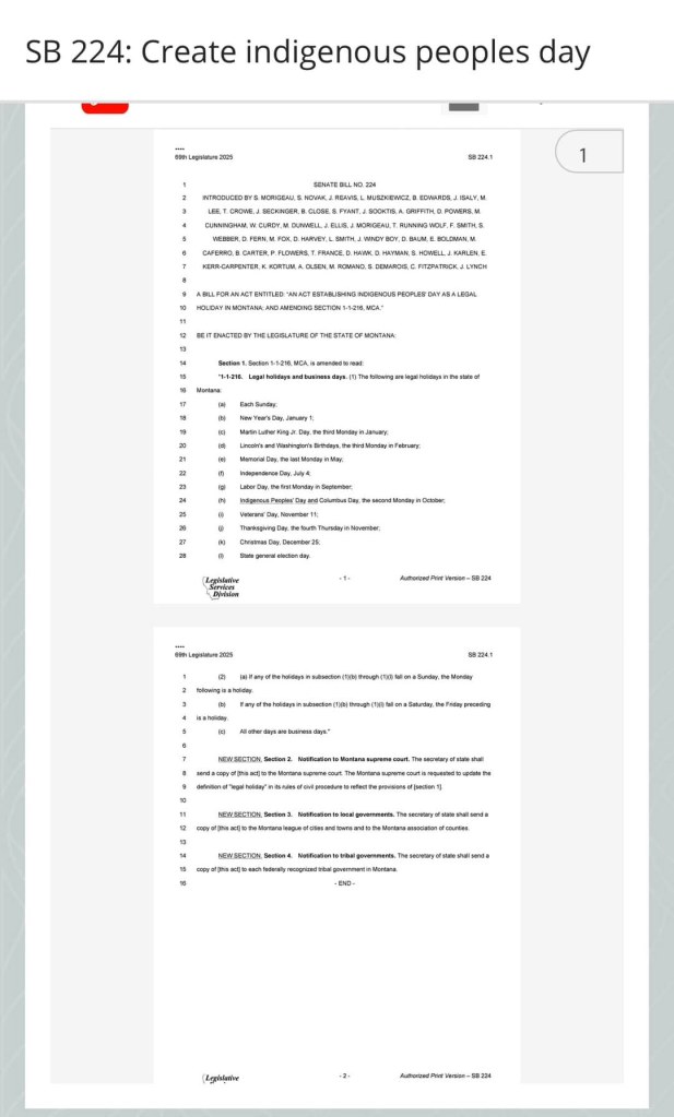 Guess what!!! SB 224 up Feb. 5th at 3:00 pm. If you cannot show up to present/testify/advocate for the #IndigenousPeopleDay #IndigenousPeoplesDayMontana please consider calling your representatives this week and ask them to vote YES! to get IPD recognized on second Monday of each October. Yes, we are willing to collaborate and have both days on the same day. We are still based on celebrating ALL of our ancestral lineages.