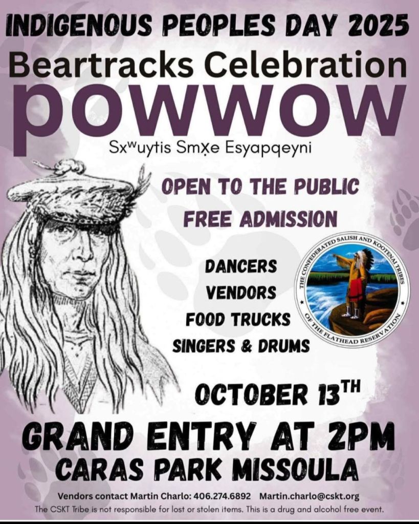 • Missoula (https://northernplainsresourcecouncil.cmail20.com/t/j-l-gdkdhkd-ikgtuqx-i/): The Confederated Salish & Kootenai Tribes are hosting the 3rd Annual Beartracks Celebration Powwow from 1:00 to 5:00 PM at Caras Park.