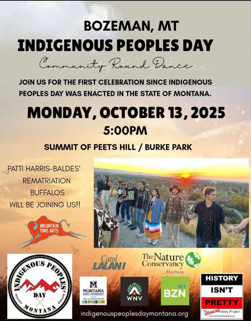 • Bozeman (https://northernplainsresourcecouncil.cmail20.com/t/j-l-gdkdhkd-ikgtuqx-j/): Indigenous Peoples Day Montana and the Extreme History Project are organizing an event from 5:00 to 7:00 PM at Peets Hill in Bozeman.