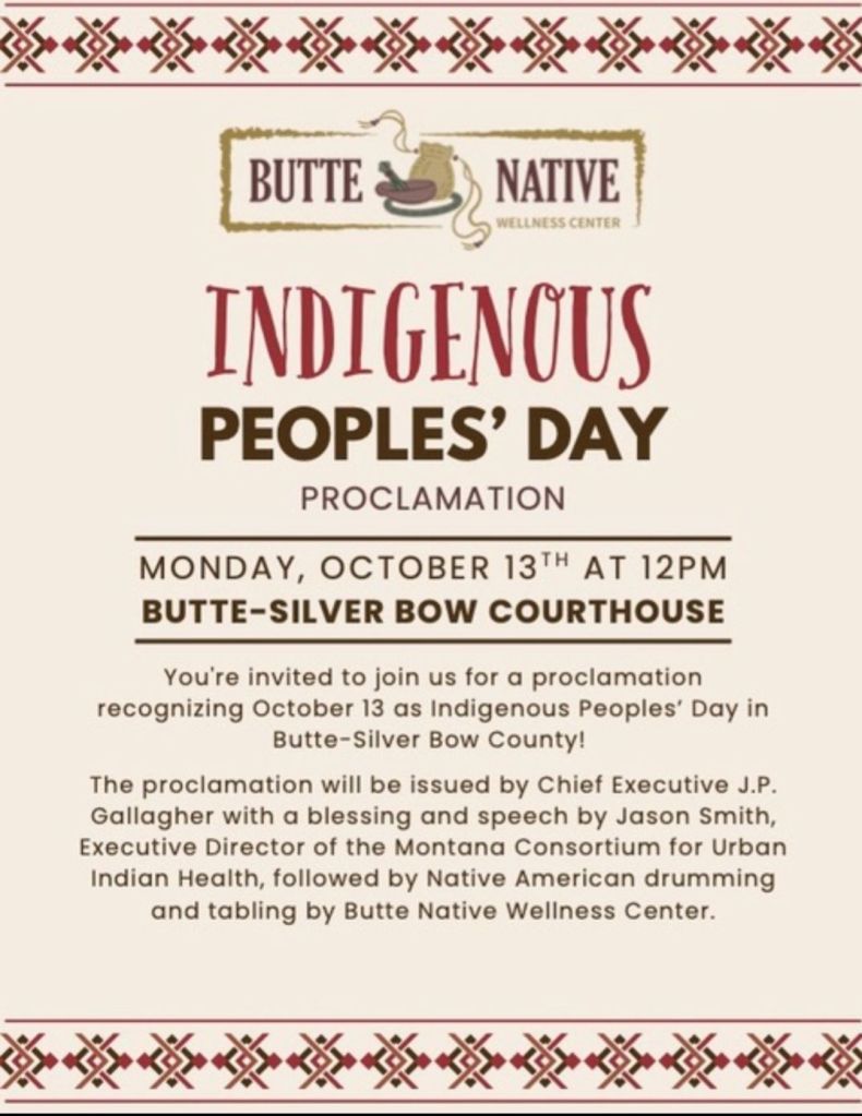 • Butte (https://northernplainsresourcecouncil.cmail20.com/t/j-l-gdkdhkd-ikgtuqx-h/): Butte Native Wellness Center, Western Native Voice, and Butte-Silver Bow County will host a celebration from 11:00 AM to 1:00 PM at the Butte-Silver Bow Courthouse. The first 100 attendees will receive a free Indian taco!