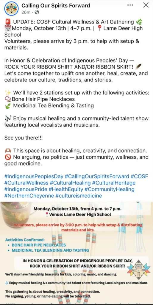 Let’s get IPD recognized in the State of Montana and learn how to celebrate all our ancestral tendrils. If you can’t do any of this, please consider sending good energies for IPD to pass. Nèaše